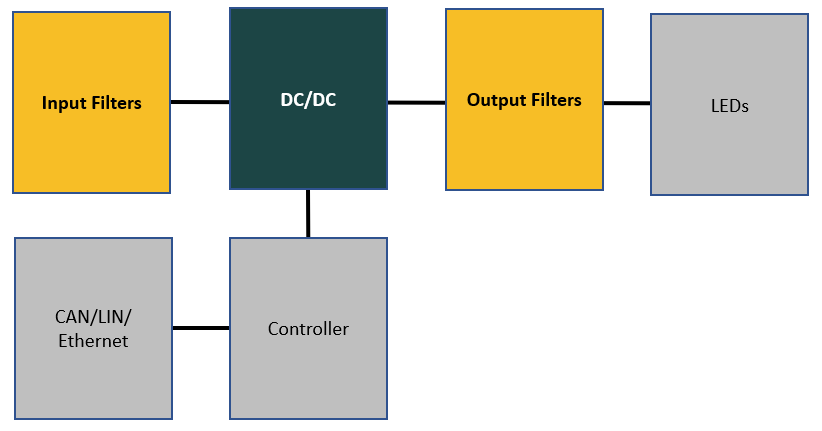 The Automotive LED lighting system consists of lighting driver and signaling devices mounted to or integrated into some cases. Below is the block diagram of LED driver.